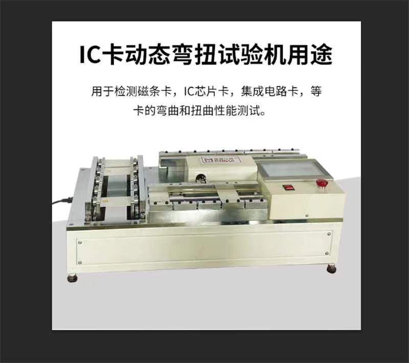 IC卡動態(tài)扭曲試驗機用于檢測磁條卡,IC芯片卡,集成電路卡,銀行卡、交通卡、工控設(shè)備存儲卡、門禁卡、社??ǖ却艞l/芯片復合卡的等卡的動態(tài)彎扭壽命驗證?的可靠性測試? 。
