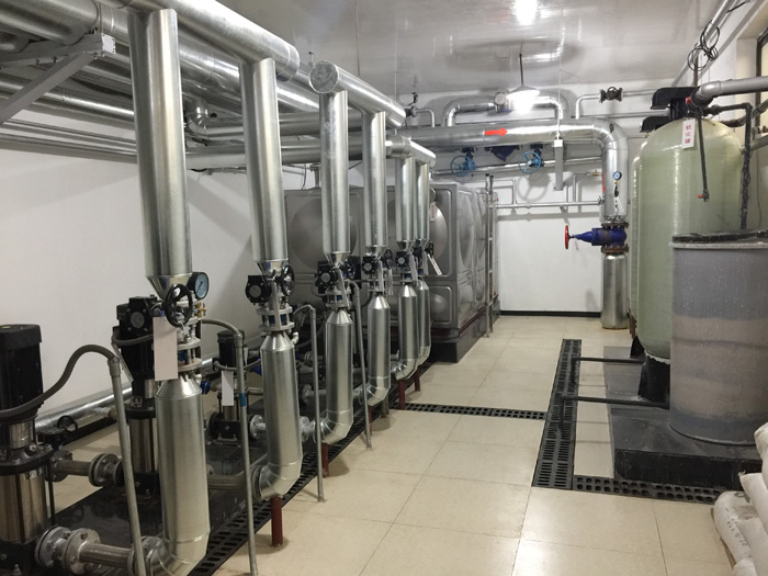 鍋爐房總設計負荷為11000KW,鍋爐房設置10臺1100KW全預混高效冷凝燃氣熱水鍋爐,提供冬季建筑物采暖熱源。